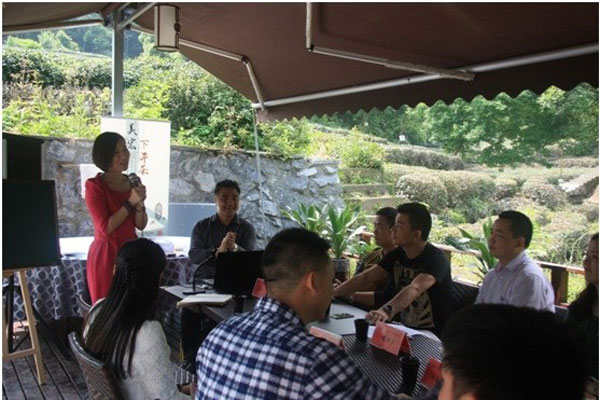 (圖為共創(chuàng)會董事會秘書王薇主持本次研討會,在愜意的陽光中拉開本次私董會的序幕。)