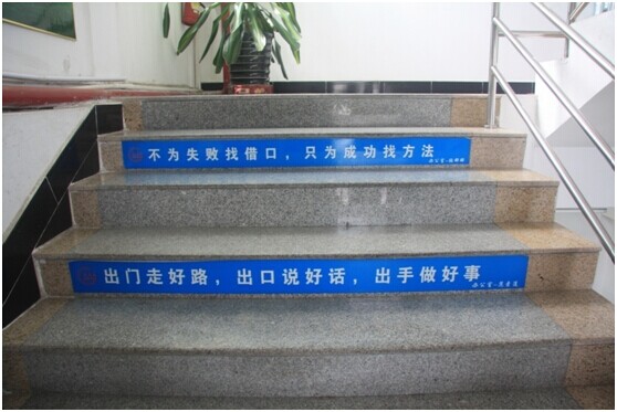 (獨特的勵志階梯,每條勵志語都出自員工,以同輩的力量來鼓勵員工積極向上)