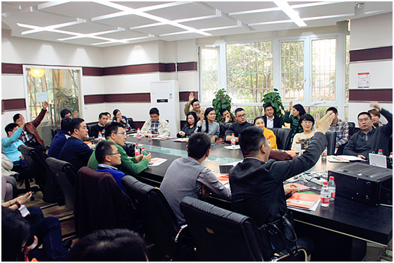 (互秀獨特而高效的企業(yè)經(jīng)營文化理念,令共創(chuàng)會成員震撼,紛紛提問展開討論。)