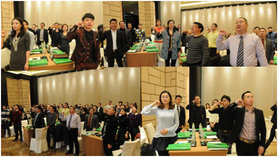 接下來(lái)是本次盛典最莊嚴(yán)的一刻,共軍們?nèi)w起立,握拳右舉、用心宣誓著我們共創(chuàng)會(huì)自己的宣言:……積極向上、勤奮好學(xué),我們樂于分享,渴望成長(zhǎng)……