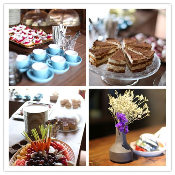 (會場早已備好的西點、咖啡、水果、鮮花,垂涎欲滴了)