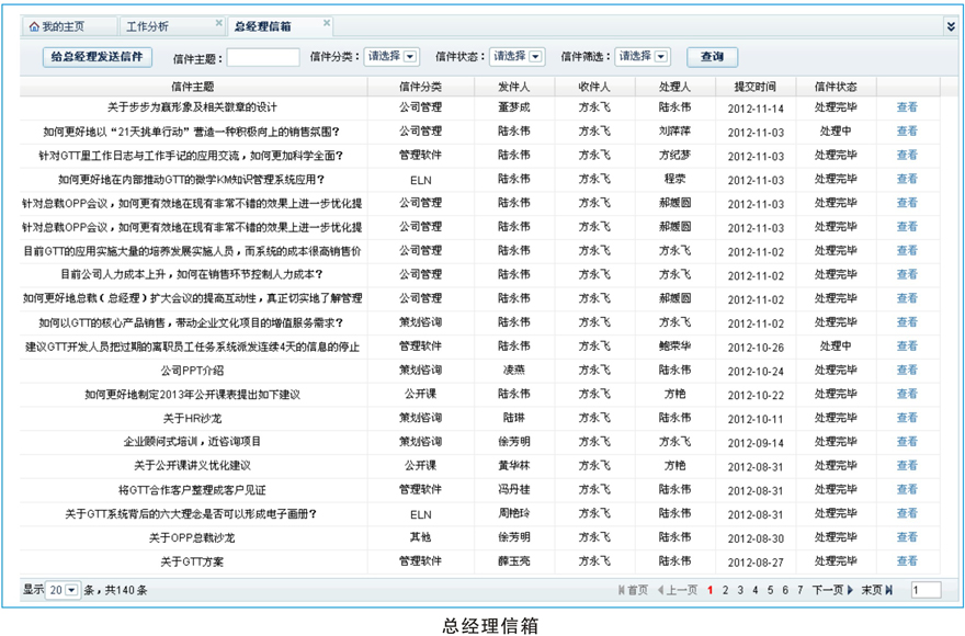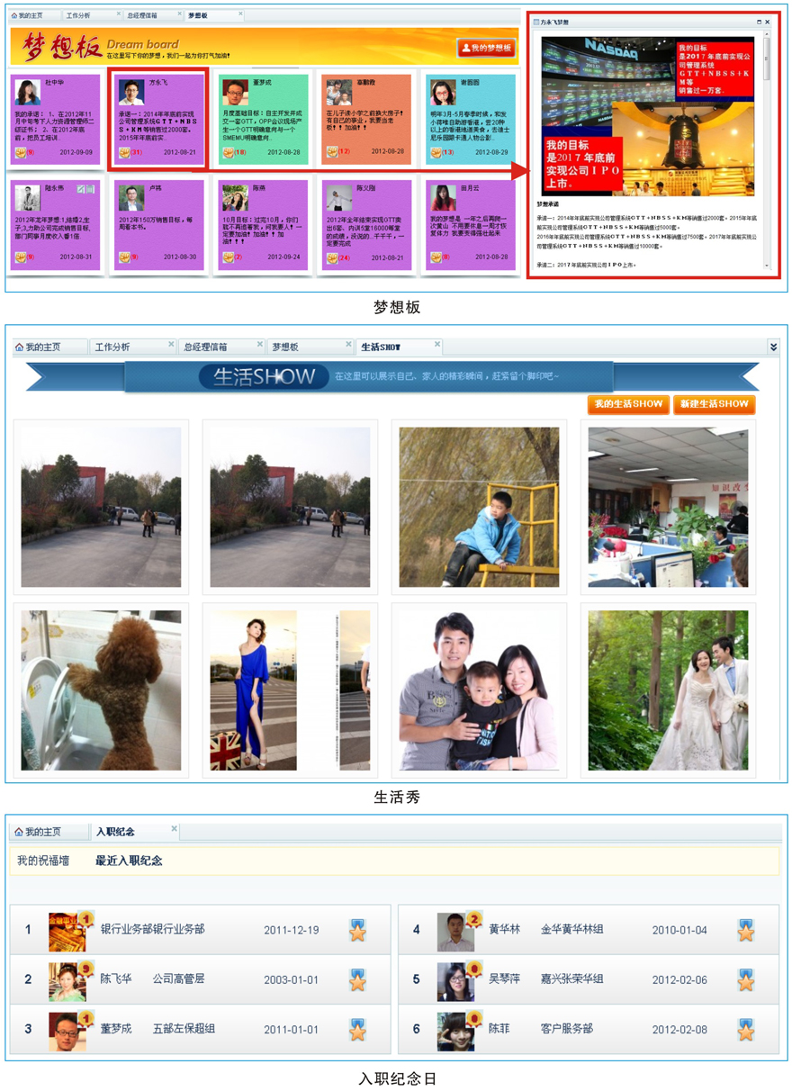 GTT員工關(guān)懷系統(tǒng)目的在于從細(xì)微入手、讓員工說(shuō)出心聲,以溫馨凝聚員工,從而培養(yǎng)員工對(duì)企業(yè)的認(rèn)同感和歸宿感,激發(fā)其敬業(yè)意愿,提高公司員工的敬業(yè)度。主要功能通過(guò)總經(jīng)理信箱、學(xué)習(xí)成長(zhǎng)、生日提醒、入職紀(jì)念、每日一句、工作助手、員工互助、寶寶秀、實(shí)踐社團(tuán)等讓員工感受家的溫暖;從而提高員工幸福指數(shù),增加企業(yè)文化內(nèi)涵!